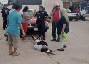 Al caer al pavimento, se llevó un fuerte golpe en la cabeza que derivó en la hemorragia, lo que alertó a automovilistas y testigos que le brindaron el apoyo. Al final, la fémina fue atendida por socorristas de Protección Civil (PC) que la canalizaron a un hospital, reportando su estado de salud como estable.