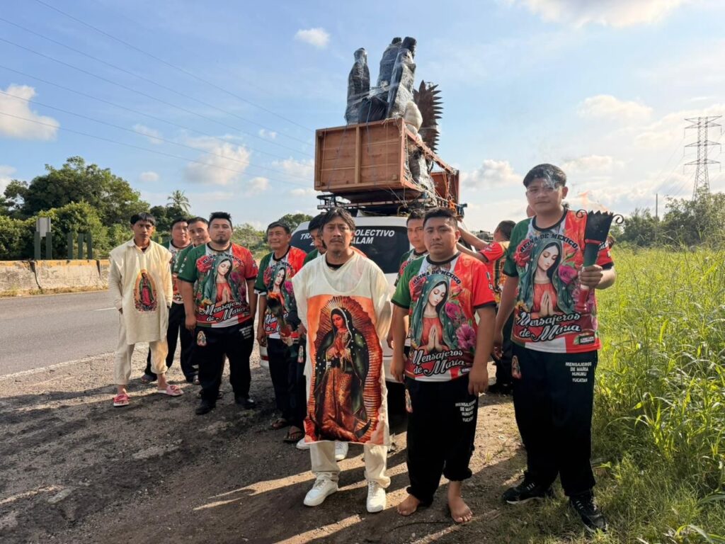 Los mensajeros de María de Hunukú, Yucatán, han estado recorriendo autopistas corriendo y siendo resguardados en camionetas.