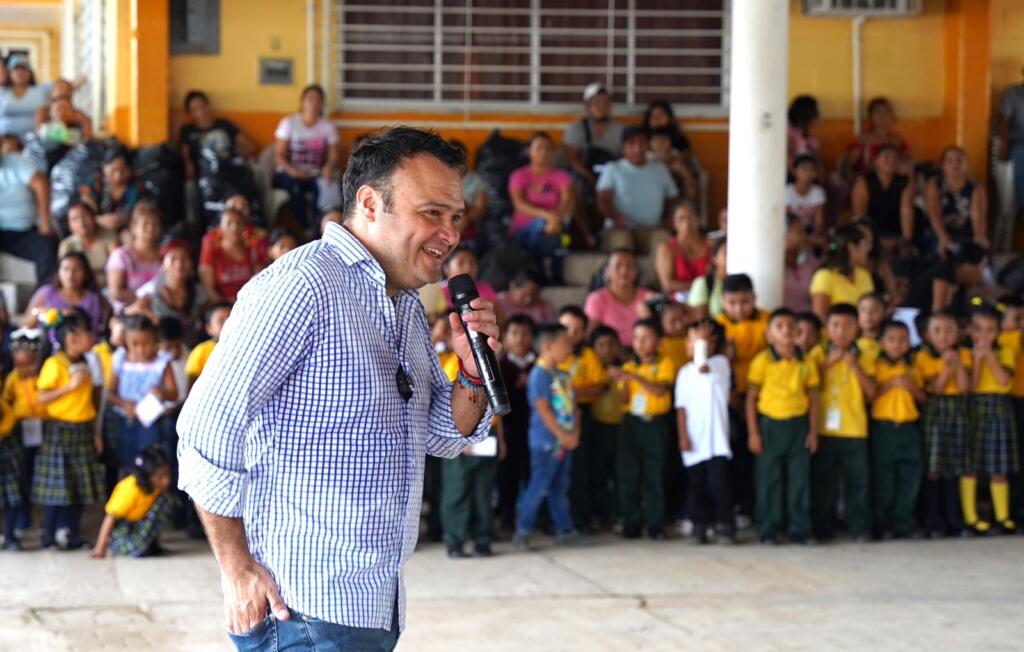 En su mensaje ante los presentes, la primera autoridad destacó que con estos incentivos se apoya la economía de los padres de familia para este regreso a clases y se fomenta a su vez la educación ambiental, al ser intercambiado de forma simbólica el material escolar por pet que recolectan los mismos estudiantes.