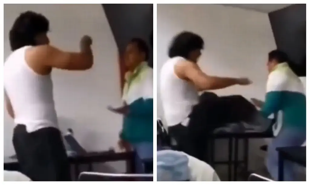 En redes sociales circula un video que muestra el momento exacto en que un alumno golpea en repetidas ocasiones a un docente, a quien el joven acusa de presuntamente se burlaba de él.