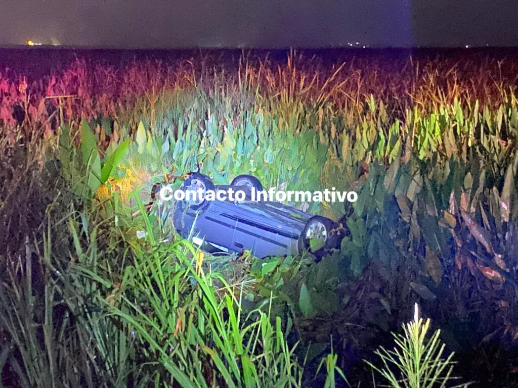 Fue alrededor de las 8 de la noche, cuando un automóvil marca Sentra 2005, color gris, se salió de la cinta de rodamiento y cayó 15 metros dentro del pantano, quedando toldo abajo.