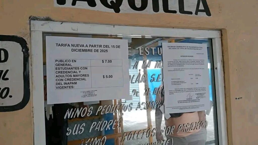 El ajuste fue dado a conocer por la Sociedad Cooperativa de Transporte Fluvial mediante un oficio fechado el 9 de diciembre, donde se detalla que el incremento responde al alza constante en los costos operativos, entre ellos refacciones, motores, salarios y mantenimiento de las embarcaciones.