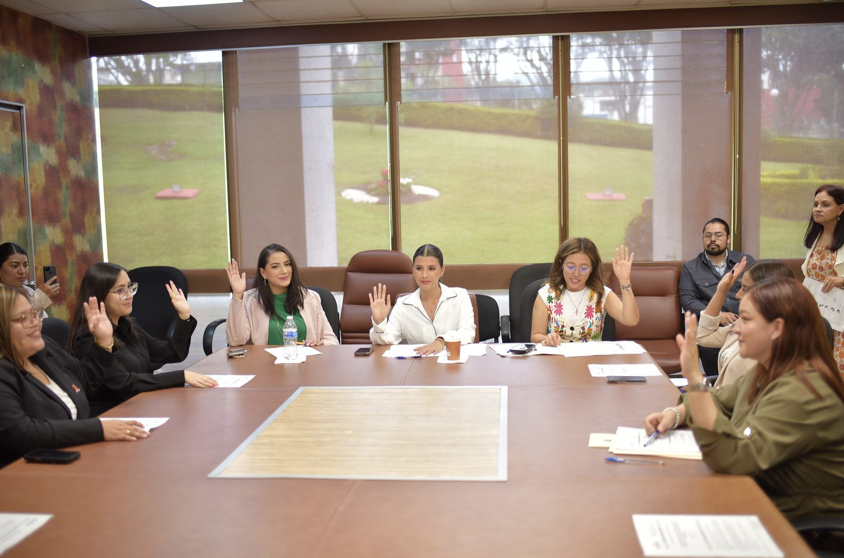 Durante una reunión celebrada en oficinas del Palacio Legislativo, las integrantes de la instancia legislativa diputadas Estefanía Bastida Cuevas, Naomi Edith Gómez Santos presidenta y secretaría respectivamente, y las legisladoras Valeria Méndez Moctezuma, Ana Rosa Valdés Salazar, Ana Rosa Valdés Salazar, Mayra Angélica Amador Pérez, Astrid Sánchez Moguel, Elizabeth Morales García, Roxana Barragán Hernández y Luz Alicia Delfín Rodríguez, vocales, coincidieron en estudiar y analizar las propuestas turnadas por la Mesa Directiva, para que dentro del ámbito de su competencia se emitan las opiniones técnicas en la materia.