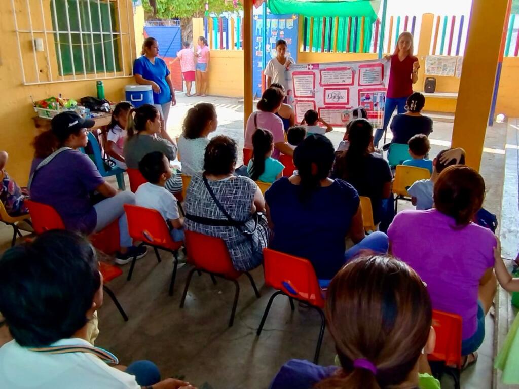A través de pláticas y talleres se abordan temas como el dengue y otras enfermedades trasmitidas por vector, de igual forma se capacita al alumnado para que aprendan a elaborar repelente orgánico.