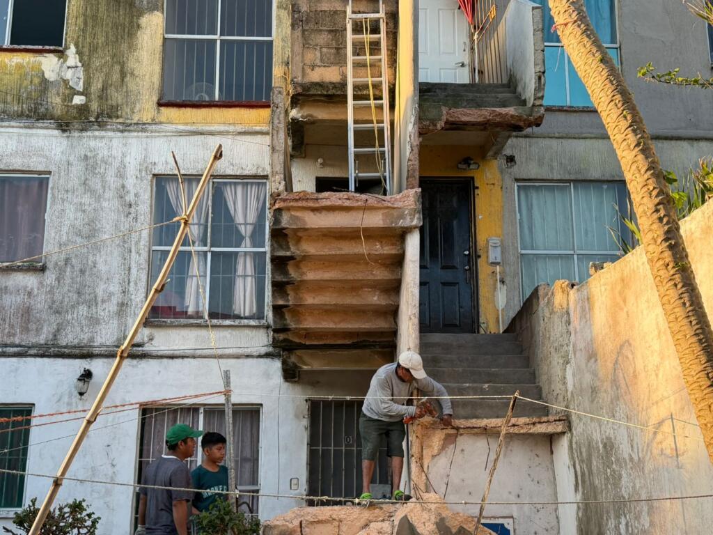 El hecho se registró cerca de las 2 de la madrugada en el edificio I, donde al menos tres partes de la estructura se vinieron abajo, impidiendo que vecinos del primer y segundo piso pudieran descender por lo que colocaron una escalera metálica.