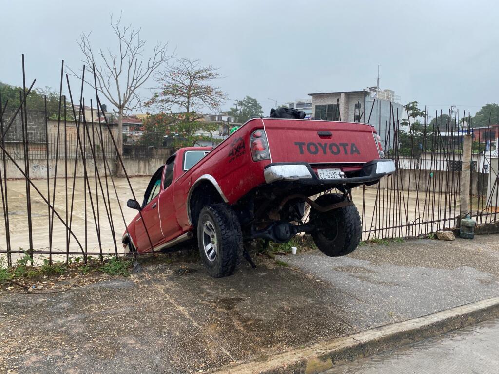 Luego de perder el control de la unidad en la que viajaba, un conductor de una camioneta Toyota, tipo Tacoma de modelo atrasado salió de la cinta de rodamiento acabando de lado contrario de la avenida Justo Sierra en la esquina con Manzanillo en Minatitlán.