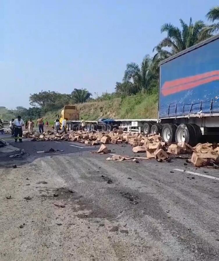 Se trató de una carambola en la que participaron 3 tráilers con mercancía, uno de ellos cargado de «Caguamas» y fue en el que más se interesó la gente.