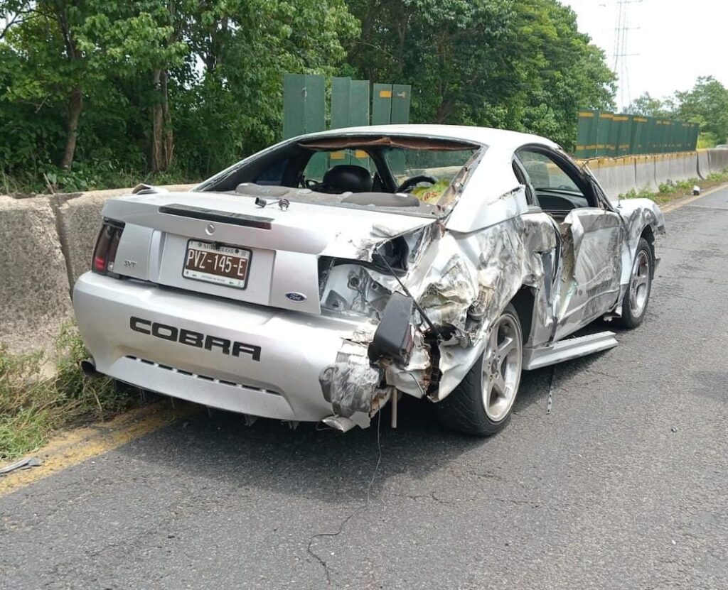 Cosoleacaque, Ver. Un aparatoso accidente se registró este lunes 1 de septiembre en la autopista Cosoleacaque–Nuevo Teapa, a la altura del puente La Ica, donde un automóvil deportivo Mustang gris terminó con severos daños en su costado derecho tras ser embestido por un tráiler.