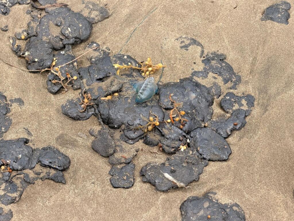 El residuo petrolero impregnó diferentes residuos desde botellas de plástico, vidrio, madera y se puede ver en diferentes puntos en menor y mayor cantidad.