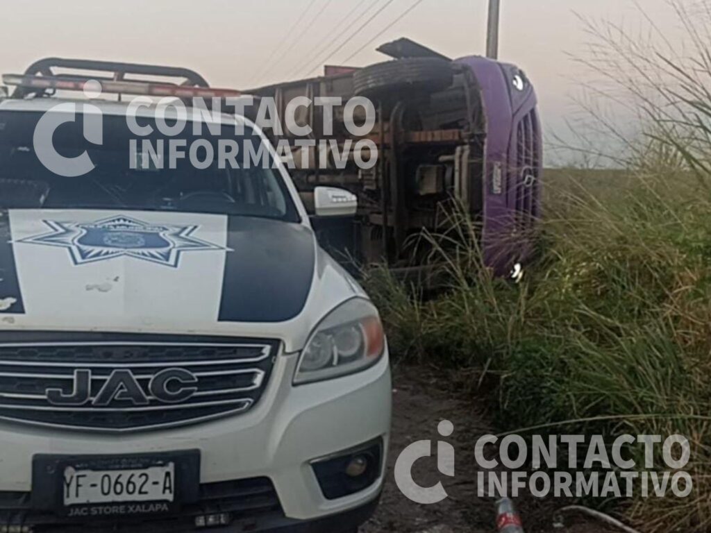 Cosoleacaque, Ver. La movilización de cuerpos de auxilio en la carretera Las Matas se intensificó durante las primeras horas de este viernes, luego de que un camión de pasaje terminara volcado y una camioneta quedara fuera de la cinta de rodamiento, en un hecho que dejó al menos cinco personas lesionadas.