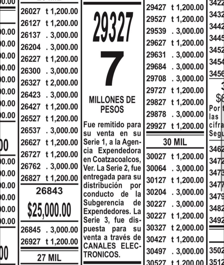 El sorteo se realizó este martes 4 de noviembre y el boleto ganador fue el 29327, remitido a una agencia expendedora en Coatzacoalcos.