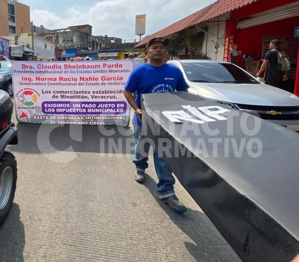 Minatitlán, Ver.- En una manifestación pacífica, decenas de comerciantes de Minatitlán se reunieron en la calle Madero y Amelia Riverol, en el malecón de la ciudad, para expresar su descontento contra el Gobierno Municipal liderado por la doctora Carmen Medel Palma. La protesta se centró en los altos costos del empadronamiento del comercio local, que ha aumentado hasta en un 300% en algunos casos.