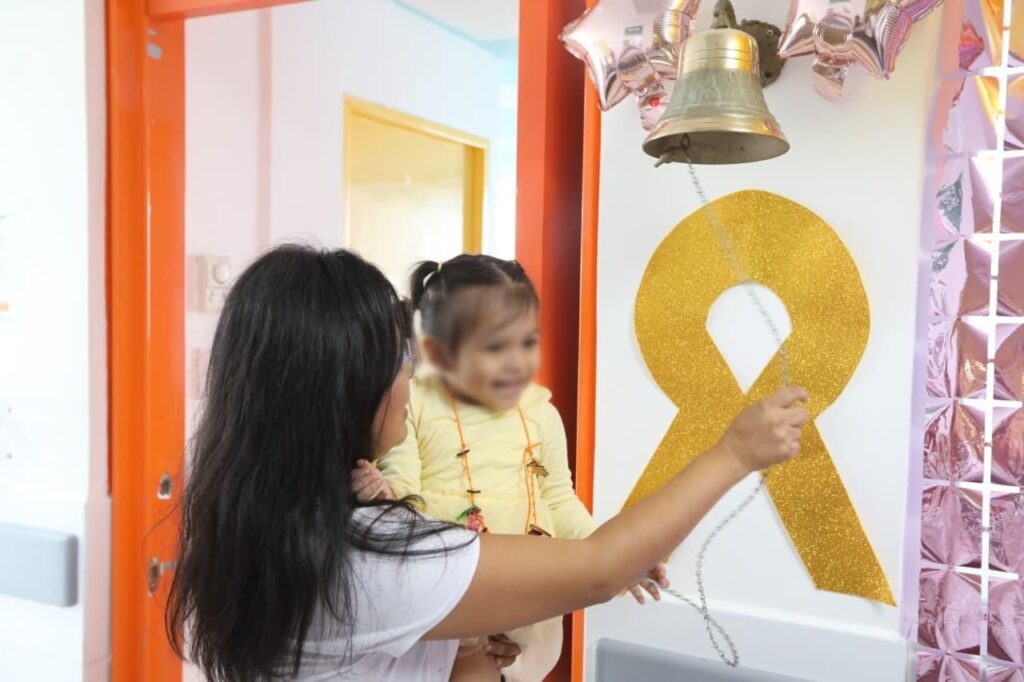 Tras un año de tratamiento en el Centro de Referencia Estatal para la Atención del Niño y la Niña con Cáncer (OncoCREAN) del Hospital General de Zona (HGZ) No. 36 de Coatzacoalcos, del Instituto Mexicano del Seguro Social (IMSS) en Veracruz Sur, por un diagnóstico de histiocitosis de células de Langerhans, Alma Carolina “N” concluyó exitosamente su tratamiento y tocó la campana del triunfo.