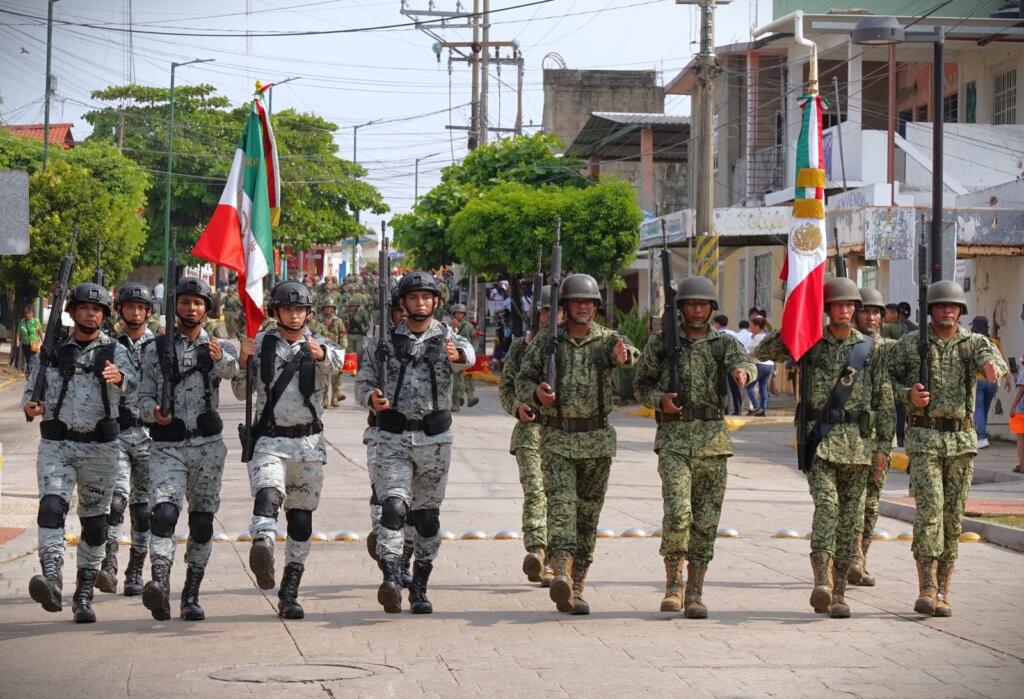 Cosoleacaque, Ver. Con la participación de alumnos de escuelas primarias, secundarias, preparatorias, universidades del municipio de Cosoleacaque, elementos de la policía municipal, Protección Civil, Guardia Nacional y del Ejército Mexicano se realizó el desfile cívico-militar conmemorativo al 214 aniversario de la Independencia de México.