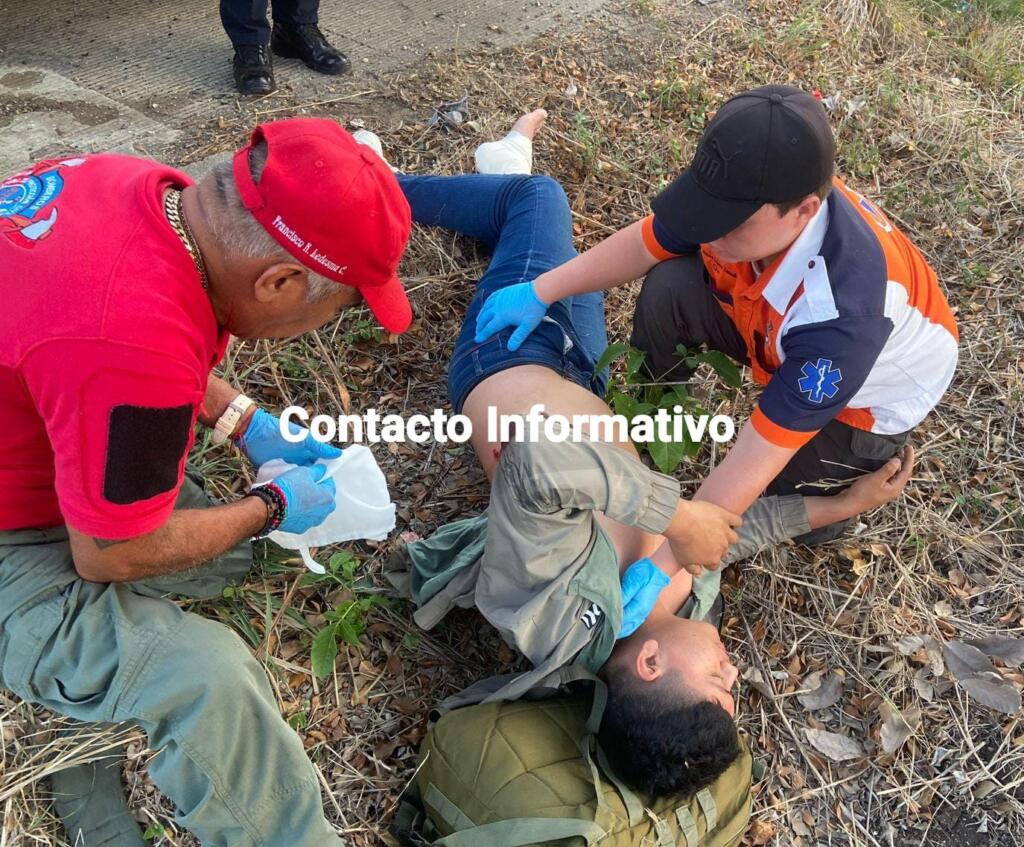 Al lugar, llegó la unidad de Protección Civil de Cosoleacaque (PC), quienes atendieron al hoy lesionado quien presentaba una fractura expuesta en el pie derecho, una herida de aproximadamente 20 centímetros con levantamiento de piel con una probable fractura de costilla.
