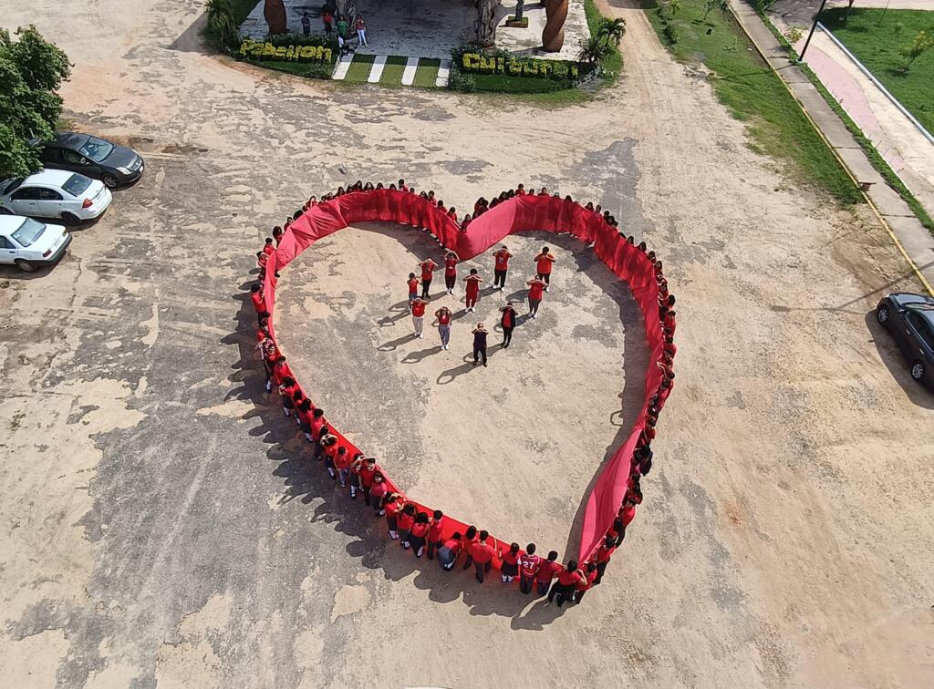 Como parte del cierre, los asistentes que portaron playeras rojas formaron la figura de un corazón para hacer el llamado a la población a evitar o reducir factores de riesgo de las enfermedades.