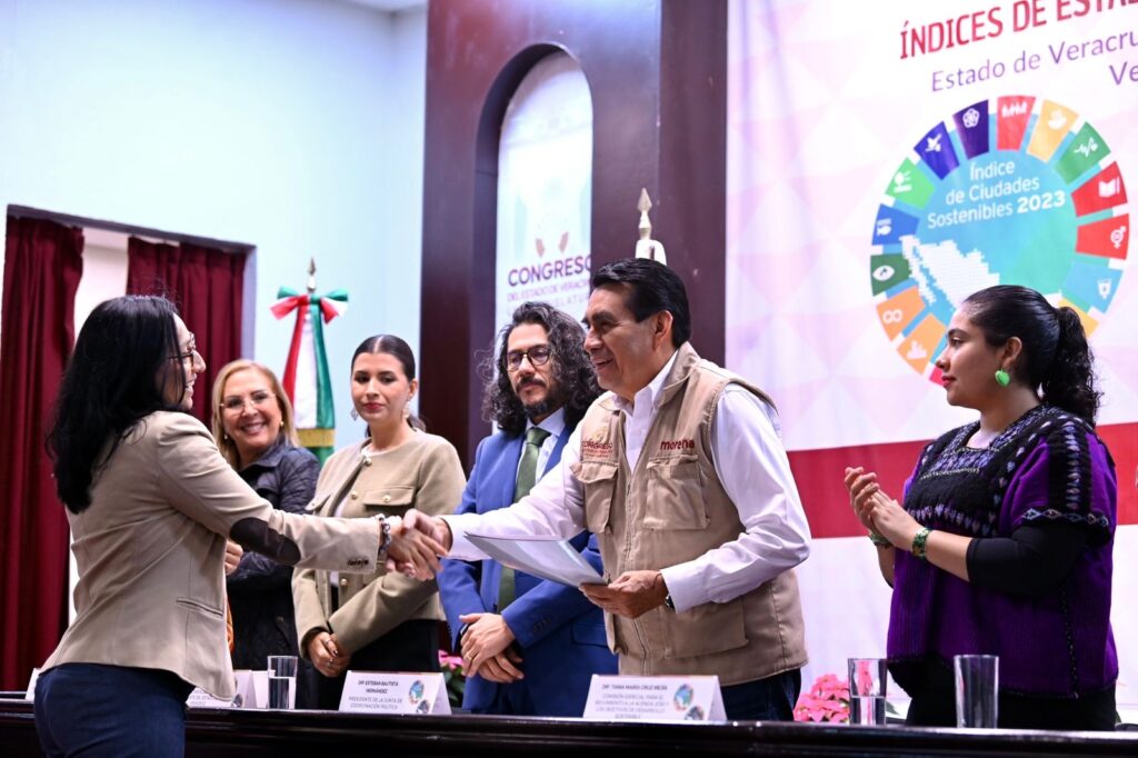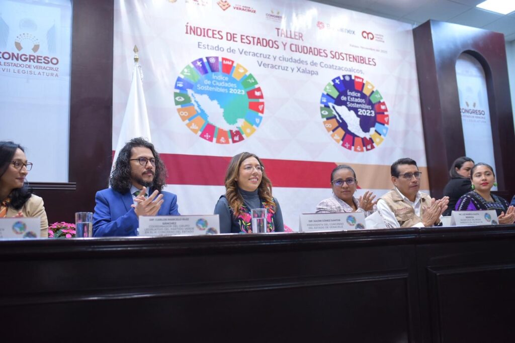 Xalapa, Ver., 12 de noviembre de 2025.- El Congreso de Veracruz contribuye al fortalecimiento del cuidado del medio ambiente, a la reducción de la desigualdad y al mejoramiento del desarrollo urbano y de las condiciones de vida de los más de ocho millones de habitantes del estado, afirmó la presidenta de la Mesa Directiva de la LXVII Legislatura, Naomi Edith Gómez Santos, al inaugurar el taller Índices de Estados y Ciudades Sostenibles, organizado por el Grupo Legislativo del Partido Verde Ecologista de México (PVEM), en colaboración con el Instituto Mexicano para la Competitividad, A. C. (IMCO), la Fundación NovaGob y el Centro Mario Molina.
