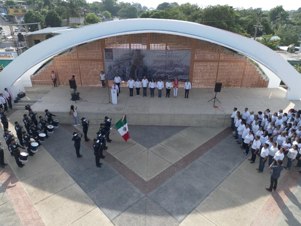 Cosoleacaque, Ver. Con la participación del cabildo del H. Ayuntamiento de Cosoleacaque, policía municipal, empleados municipales, docentes de la escuela 13 de septiembre de la colonia Agustín Melgar y ciudadanía en general, se rindieron honores al lábaro patrio para conmemorar el 177 aniversario de la gesta heroica de los Niños Héroes.