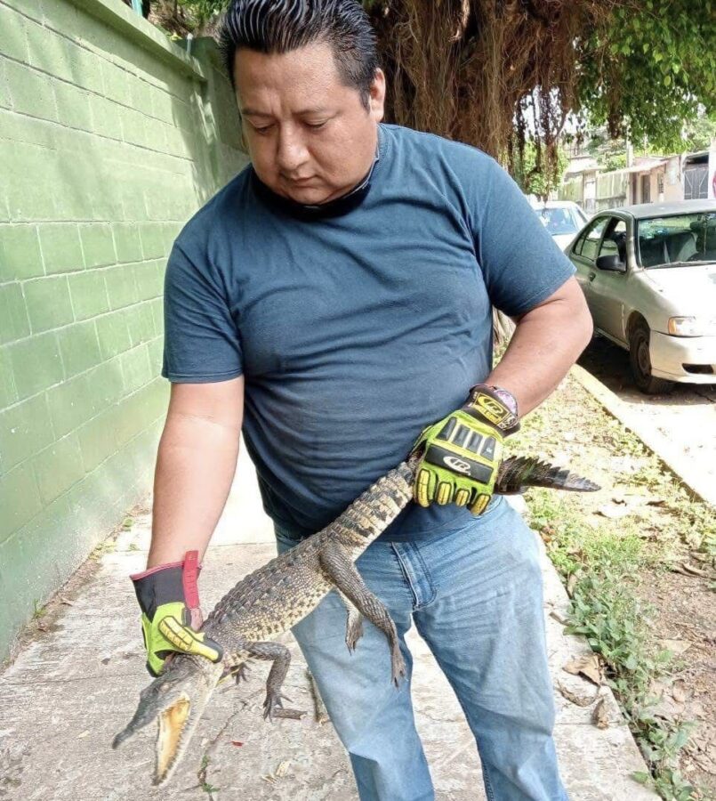 Cría de lagarto fue c@ptur@d0 en calles de Minatitlán