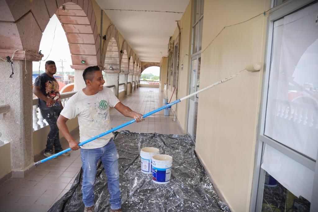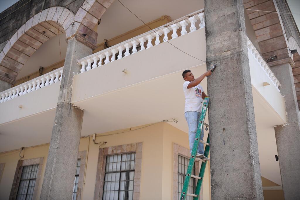 Dan mantenimiento al edificio del palacio municipal de Cosoleacaque.