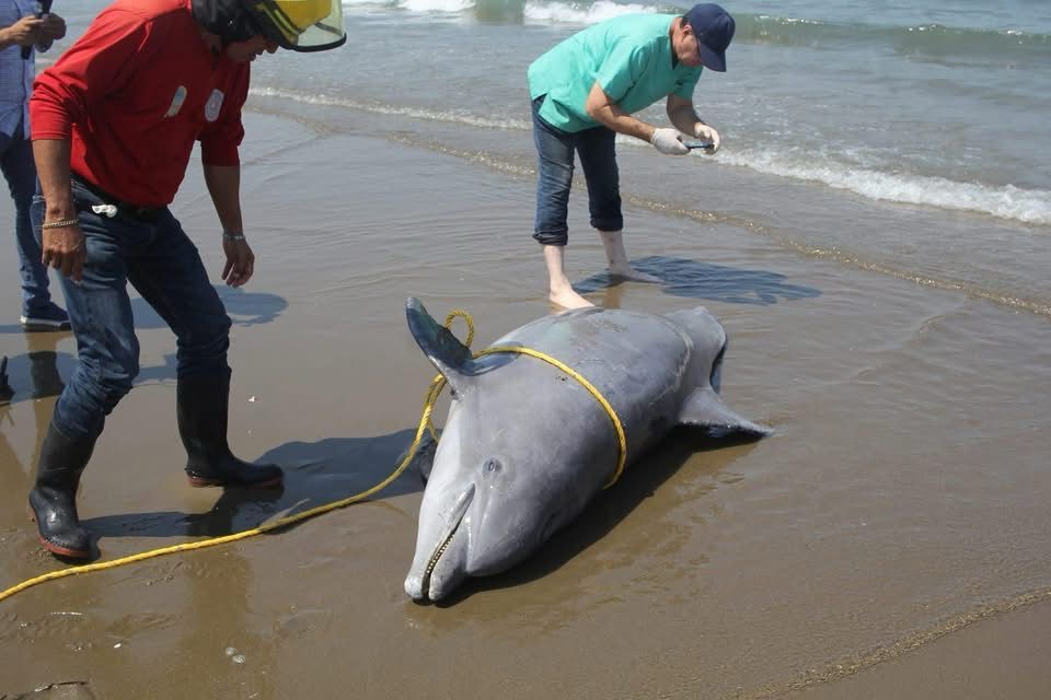 Delfín mut!lad0 en playa de Coatzacoalcos