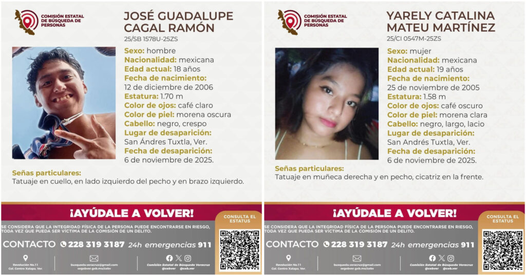 – Yarely Catalina Mateu Martínez y José Guadalupe Cagal Ramón fueron vistos por última vez el 6 de noviembre.
