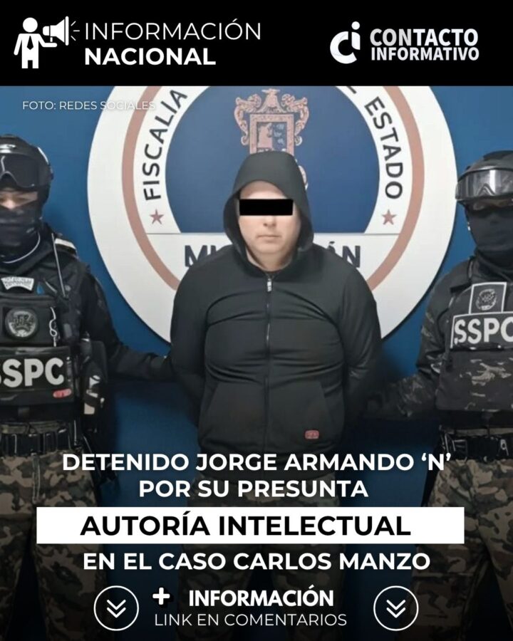 El secretario de Seguridad y Protección Ciudadana, Omar García Harfuch, dio a conocer que se logró la detención de uno de los autores intelectuales del homicidio del alcalde de Uruapan, Carlos Manzo, a quien identificaron como Jorge Armando ‘N’, alias El Licenciado.
