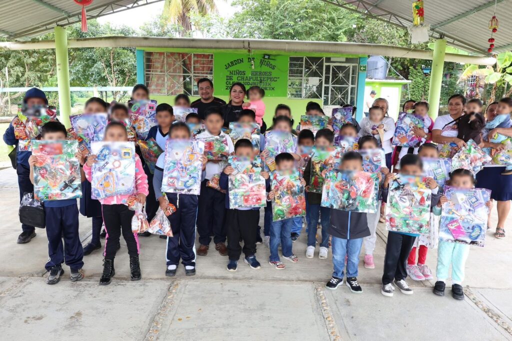 La actividad fue encabezada por la Presidenta Honoraria del Sistema DIF Minatitlán, licenciada Denhia Herrera Cupil, quien reiteró el compromiso de la institución de mantener una relación cercana y permanente con la población de la zona rural, especialmente con la niñez.