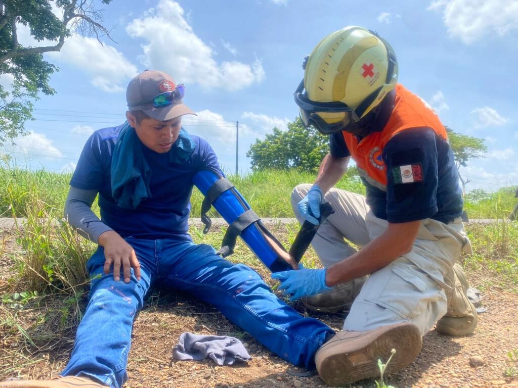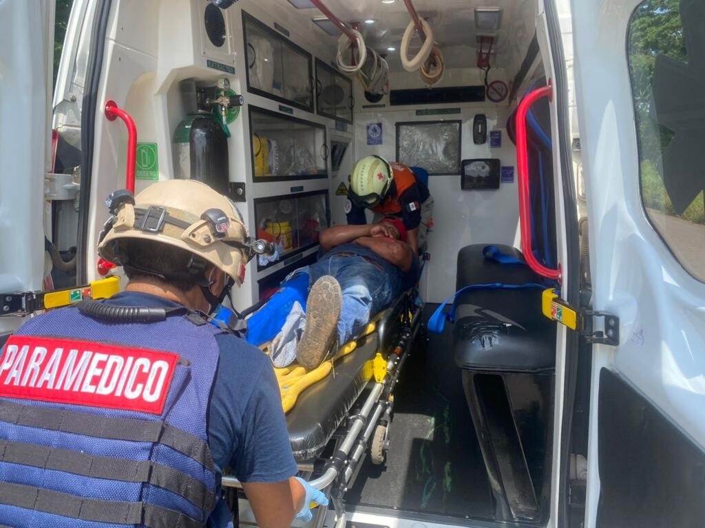 Se trata del joven Tito Alor Alamis, de 30 años de edad, presentaba golpes en distintas partes del cuerpo, y posible fractura de clavícula en el brazo izquierdo, es vecino de la localidad de Pino Suarez, perteneciente al municipio de Texistepec, viajaba con el otro varón, y cargaban varias herramientas de trabajo, y sin medidas de seguridad.