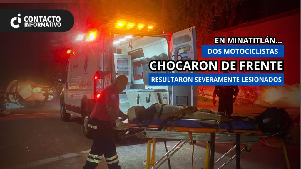 Minatitlán, Veracruz. – Un fuerte choque frontal entre dos motociclistas dejó como saldo a ambos conductores con lesiones de consideración la noche del domingo en la colonia Miguel Hidalgo.