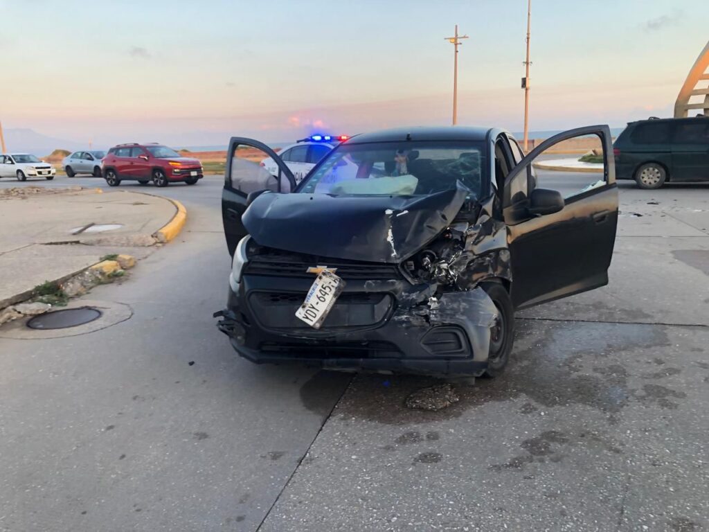 El primer percance ocurrió en la esquina del Malecón Costero y la calle Abraham Zabludovsky, entre las colonias Pensiones del Estado y Fovissste. Ahí, el conductor de una camioneta Nissan Frontier blanca, con placas XK-8332-B de Veracruz, que viajaba acompañado de otro hombre, ambos en aparente estado etílico, impactó un Chevrolet Beat negro con placas YDY-646-A, donde se trasladaban dos mujeres. Las víctimas resultaron heridas y fueron atendidas por cuerpos de emergencia.