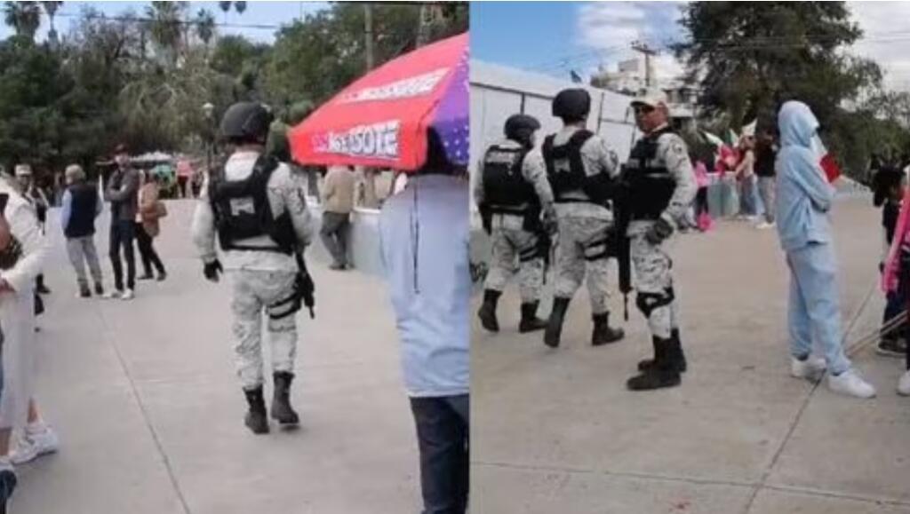 Al menos 30 elementos de la Guardia Nacional interrumpieron un evento de integrantes del movimiento Fuerza Rosa de Guanajuato que este domingo se congregaron en el Parque Hidalgo de León, para presenciar a distancia el cierre de la precampaña de la precandidata presidencial Xóchitl Gálvez y manifestarle su apoyo.