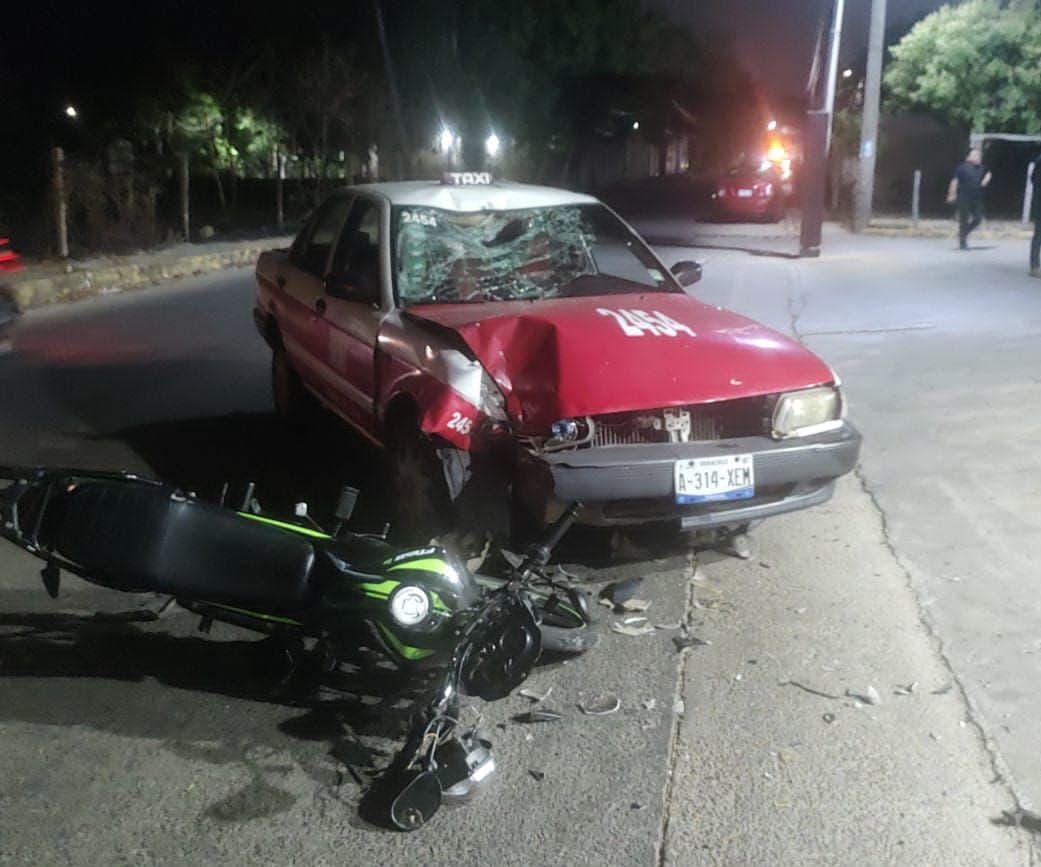 Debido a esto, el adolescente se impactó en contra de un vehículo del servicio particular en su modalidad de taxi, marcada con el número 2454, mismo que intentaba ingresar a una gasolinería ubicada en la zona.