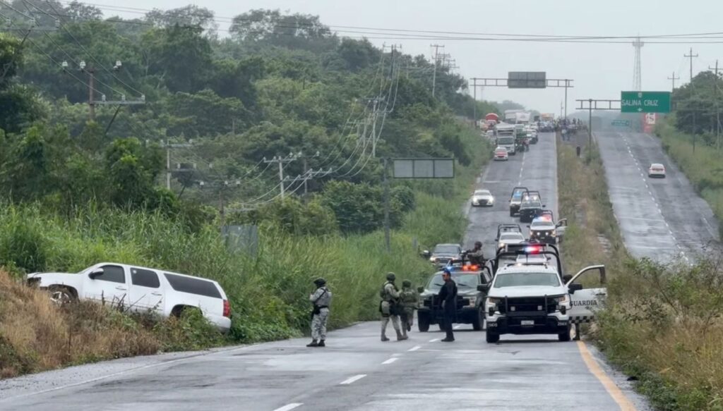 Acayucan, Ver.– Un enfrentamiento a balazos entre presuntos delincuentes y elementos de seguridad dejó como saldo preliminar tres personas heridas; entre ellas un policía estatal y dos pasajeras de un autobús, además de una camioneta asegurada. El hecho violento ocurrió la tarde de este sábado 4 de octubre sobre la carretera Transístmica Acayucan–Sayula de Alemán, en el sur de Veracruz.