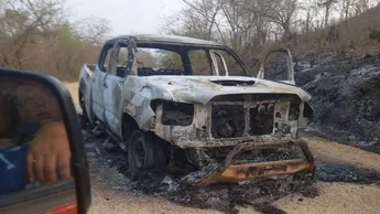 En el lugar, los hombres armados dejaron varias camionetas quemadas y dos cuerpos de hombres calcinados, presuntamente integrantes de uno de los cárteles de la droga.