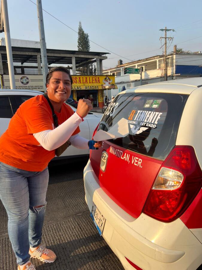 Los minatitlecos mostraron su respaldo, vehículos particulares, transporte y motocicletas recibieron su calca del Teniente para mostrar que se suman al equipo ganador, el próximo 2 de junio, el Distrito 14 se pintará de Naranja.