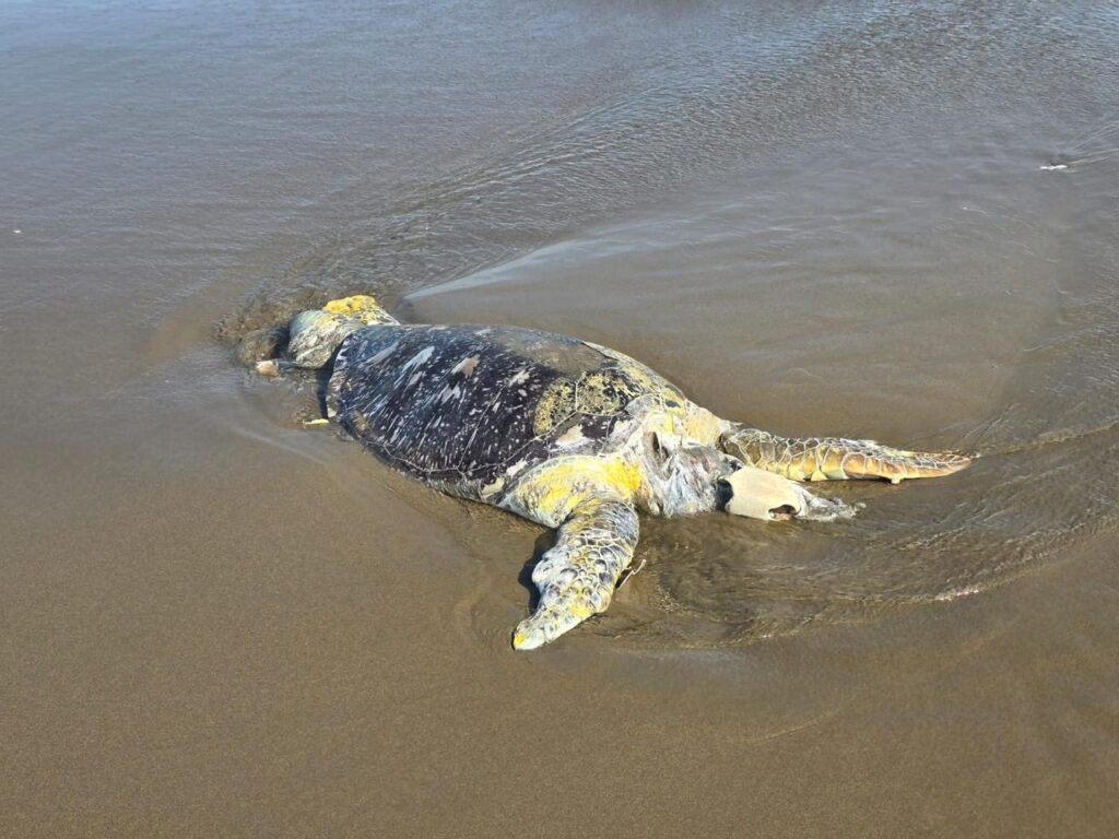 Extraña mortandad de aves y especies marinas en playa de Coatzacoalcos, entre estas una tortuga