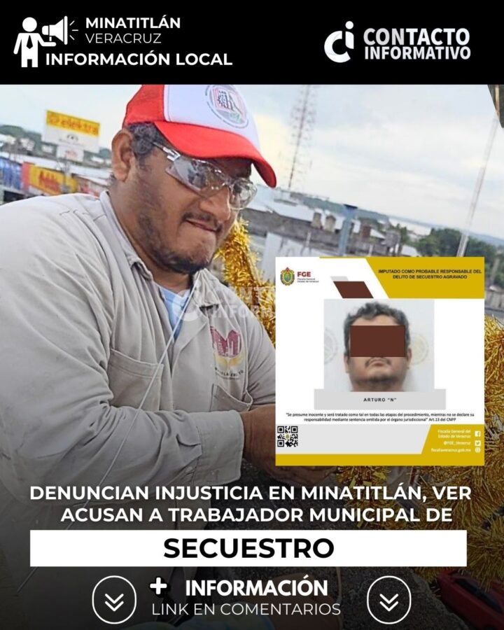Minatitlán, Ver. La detención de Arturo Soto Medina, empleado sindicalizado del Ayuntamiento de Minatitlán, ha generado indignación entre sus familiares, amigos y compañeros de trabajo, quienes aseguran que el hombre de 47 años es víctima de una acusación errónea por el delito de secuestro agravado.