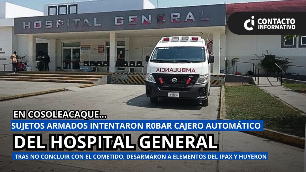 Cosoleacaque, Ver. — La madrugada de este viernes 18 de abril se registró un intento fallido de robo en el Hospital General de Cosoleacaque (HGC), donde un grupo armado buscó sustraer un cajero automático que contenía varios miles de pesos.
