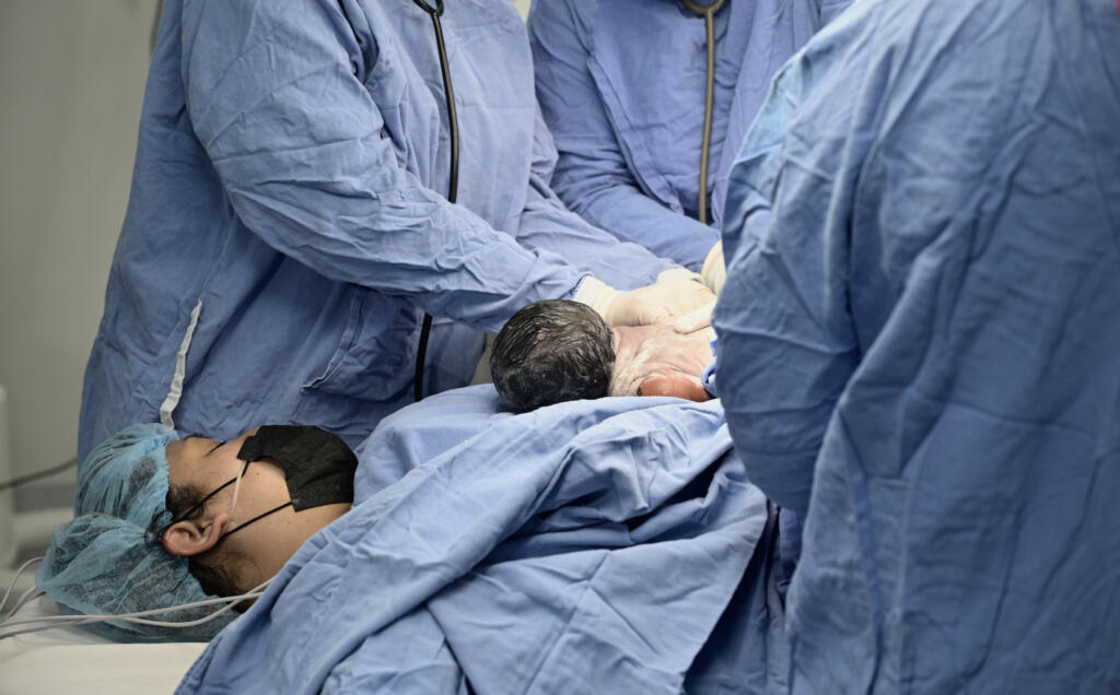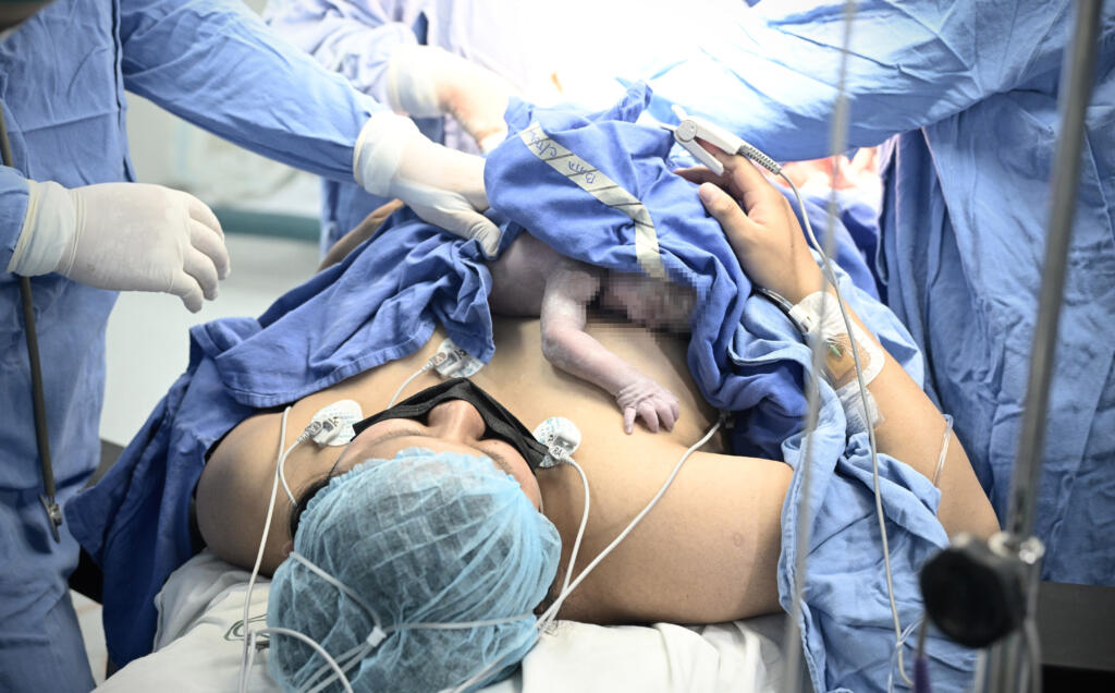 El nacimiento tuvo que realizarse por vía cesárea para asegurar la salud y bienestar del binomio, ya que se detectó que el bebé se encontraba en presentación pélvica (sentado), por lo que estaba iniciando el trabajo de parto.