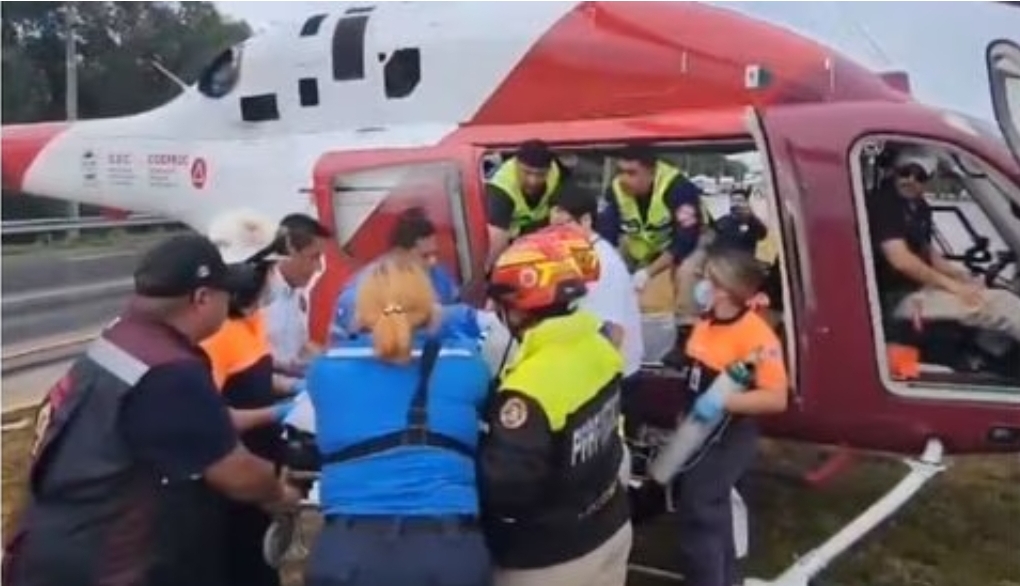 Un helicóptero aterrizó en el sitio, en donde se encontraban patrullas de tránsito, seguridad y del Cuerpo de Bomberos del municipio de Solidaridad, para llevarse a las y los heridos.