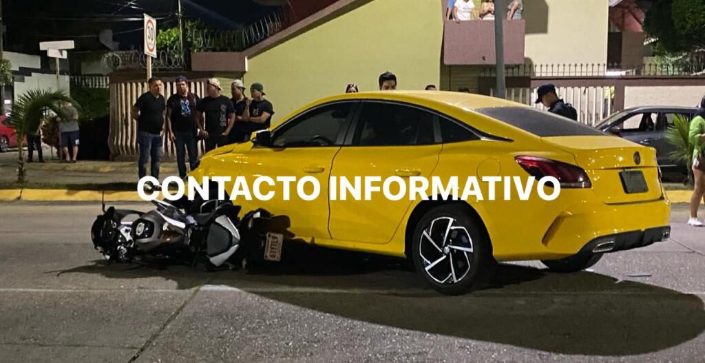 El accidente se suscitó durante la noche de este domingo, cuando un automóvil modelo reciente habría hecho corte a la altura de la calle Cuatro, sin percatarse que venía una motocicleta.