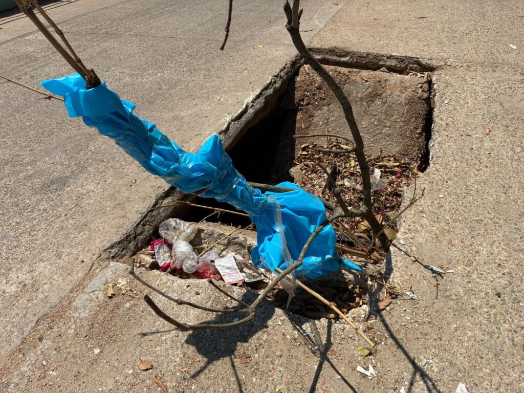 El colapso parcial de la vía ha dejado expuesto un hoyo de aproximadamente un metro de profundidad. Ante la ausencia de señalizaciones oficiales, fue un residente de la zona, Federico de Jesús Rojas, quien improvisó medidas de advertencia colocando palos, una llanta y plásticos para evitar accidentes. “Yo mismo puse los señalamientos. Si un niño cae o un ciclista pasa y no ve, puede ser fatal”, advirtió.