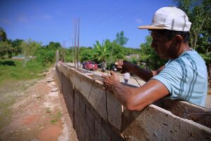 Gobierno de Cosoleacaque construye barda perimetral en la localidad de Coacotla.