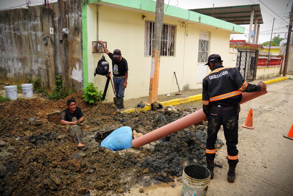 Este lunes se llevaron a cabo los trabajos de reparación de la línea de drenaje de la calle 16 de septiembre del barrio Cuarto, con el fin de mantener el sistema en óptimas condiciones y prevenir problemas futuros.
