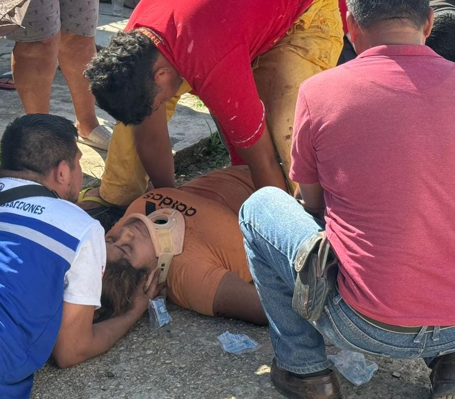 Socorristas de Protección Civil (PC) atendieron a la herida que con gritos reflejaba el dolor por probable fractura en pierna izquierda siendo canalizada a un hospital de la zona.