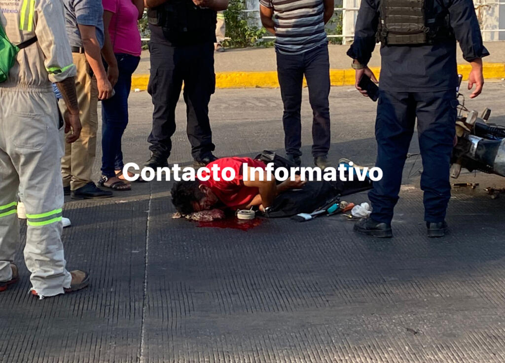 Minatitlán, Ver.- Tras permanecer una hora tendido sobre un charco de sangre ante la falta de una ambulancia en Minatitlán, un motociclista se debate entre la vida y la muerte.