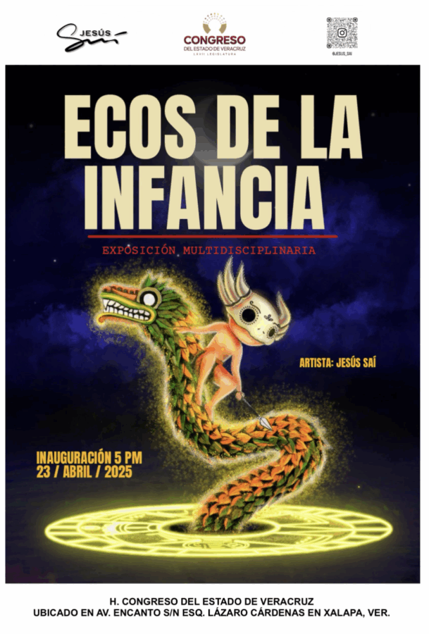 Xalapa, Ver., 23 de abril de 2025.- El Palacio Legislativo de Veracruz es un espacio propicio para todas las expresiones artísticas. Este día, en la explanada anterior al Recinto Oficial de Sesiones, el artista veracruzano Jesús Saí presentó su exposición Ecos de la Infancia, compuesta por obra gráfica y esculturas que remiten a los juegos tradicionales, la inocencia y los sueños.