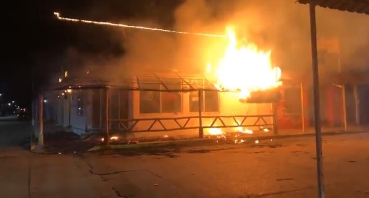 De acuerdo con testigos dos sujetos habrían lanzado bombas molotov en contra de la fachada de palmas de la coctelería, consumiéndolo en cuestión de minutos.