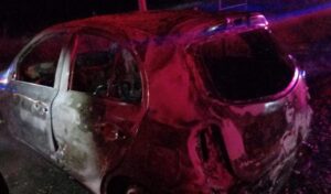 Minatitlán, Ver.- Como perdida total, terminó un taxi luego de arder en llamas tras una presunta falla eléctrica ocurrida en la carretera Coatzacoalcos- Minatitlán, en el tramo conocido como Canticas.